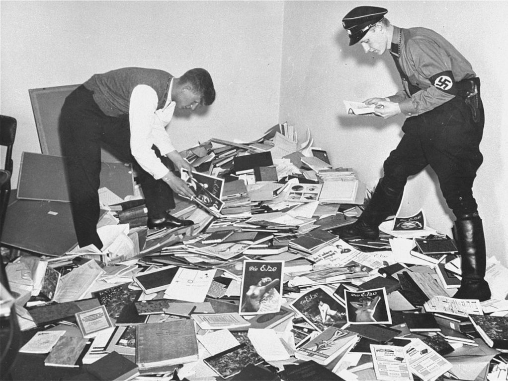 As many as 25,000 of the Institute's books, many of which contained unique insights into transgender history and medicine. A bust of Hirschfeld was paraded on a stick before being thrown onto the pyre, a spectacle documented in Nazi newsreels.