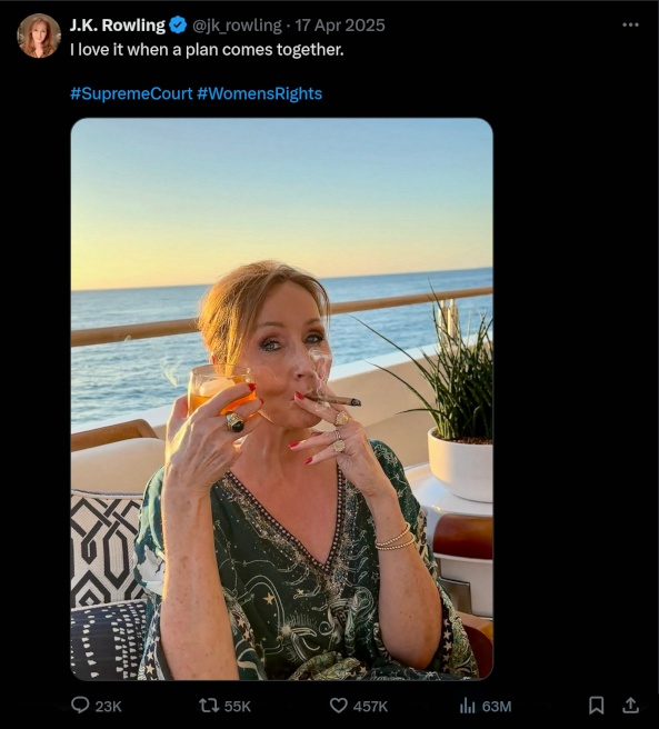 Rowling advocates for the exclusion of trans women from "single-sex spaces" (such as domestic violence shelters, bathrooms, and hospital wards) and from legal categories reserved for "biological women.". She argues that "womanhood" should be defined by biological sex rather than gender identity. She has used her massive platform to oppose laws (like the Gender Recognition Reform bill in Scotland) that would make it easier for trans people to change their legal gender.